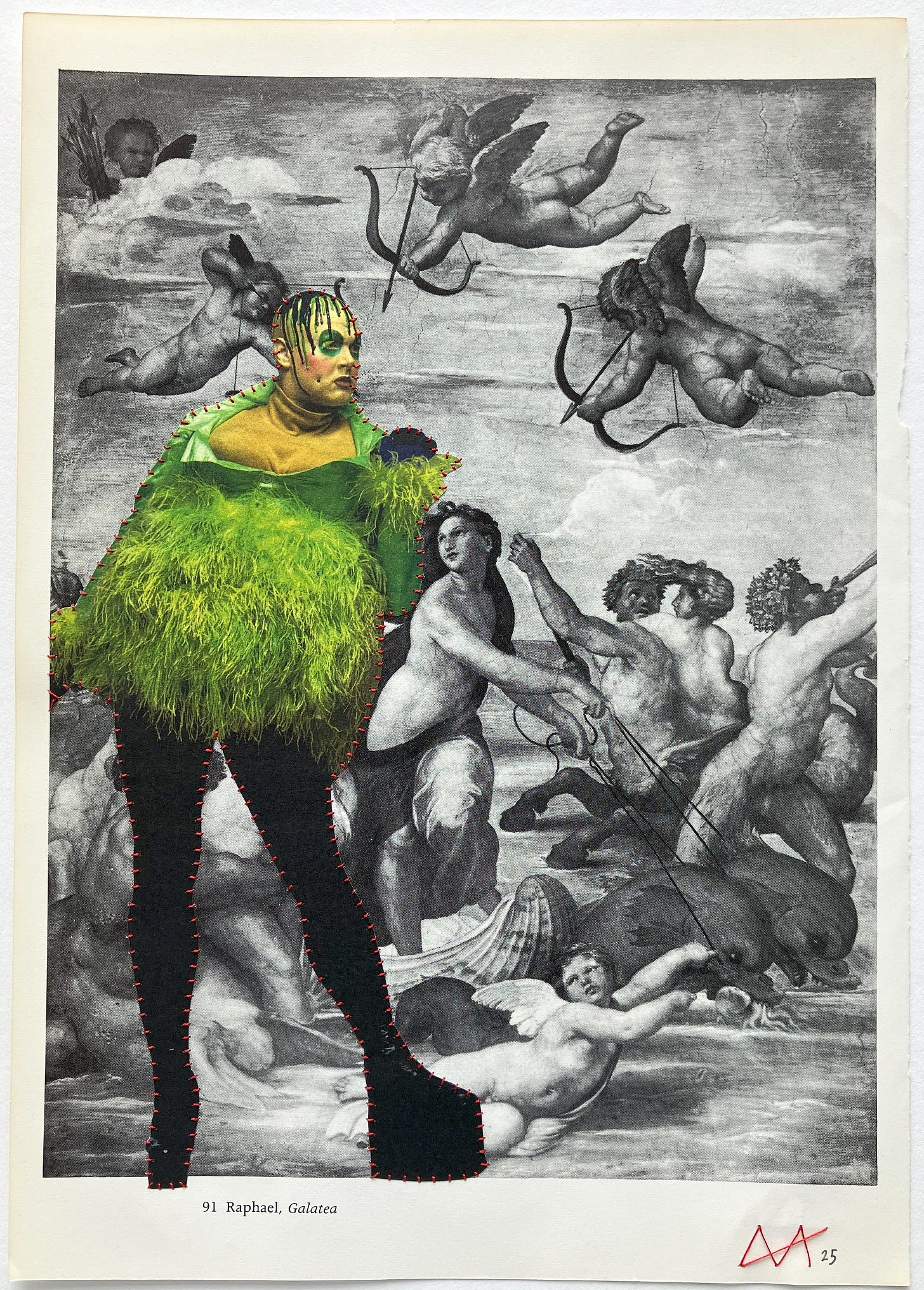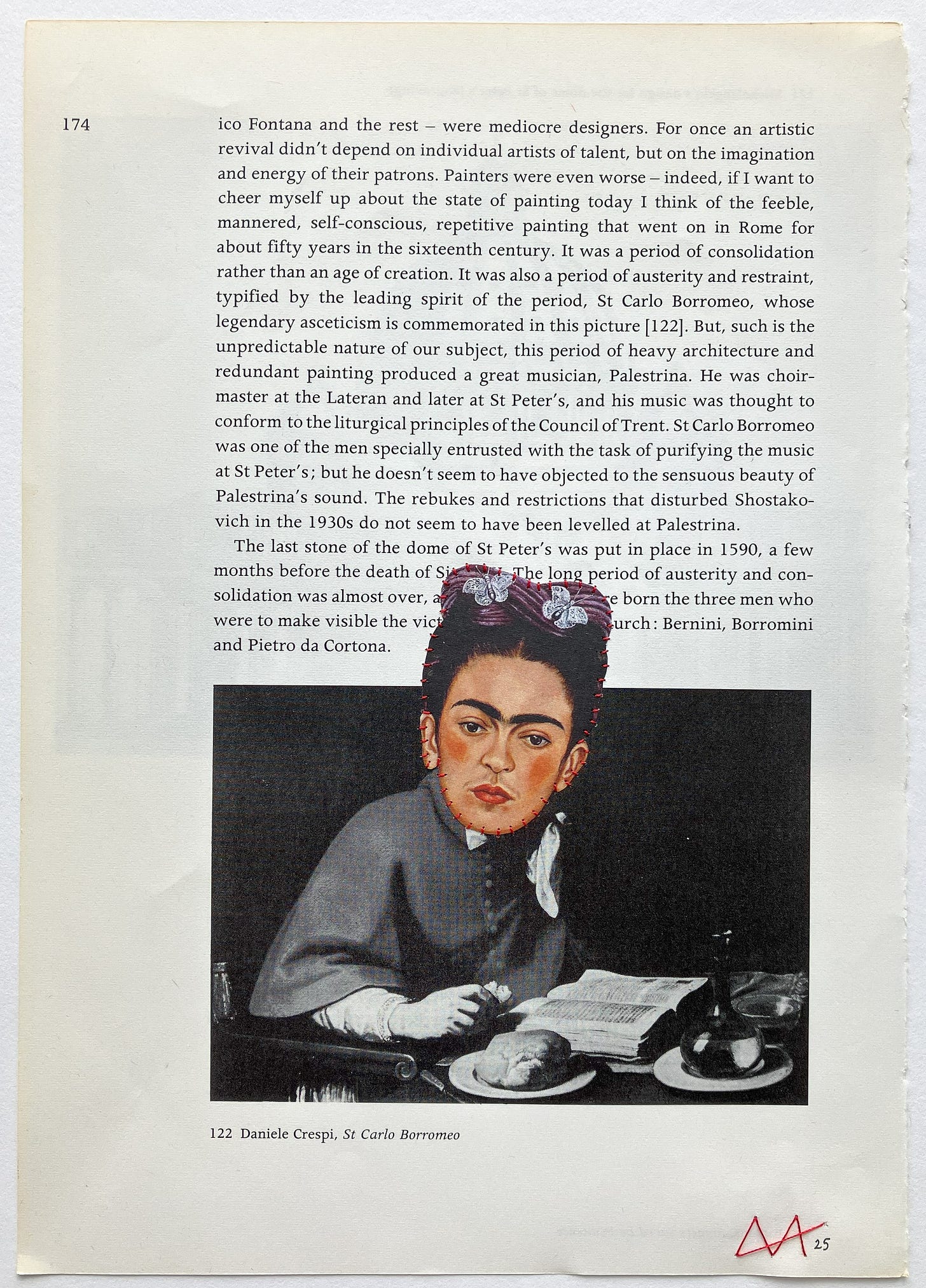New ‘Civilisation’ collages (pictured above). I have been spending early mornings and evenings butchering ‘Civilisation’. That’s the book to accompany the ancient TV series by Lord-Sir-Kenneth-Clark, a man born into a wealthy ‘textiles family’ and responsible for my questionable early art education (didn’t include female artists). Anyway, I’ve never cut up a serviceable book before, due to deeply ingrained ‘respect’ for the printed word. But recently, I decided not to give a shit. I have turned each page (along with old Tate/ V&A magazines) into collages with a joyful vengeance.