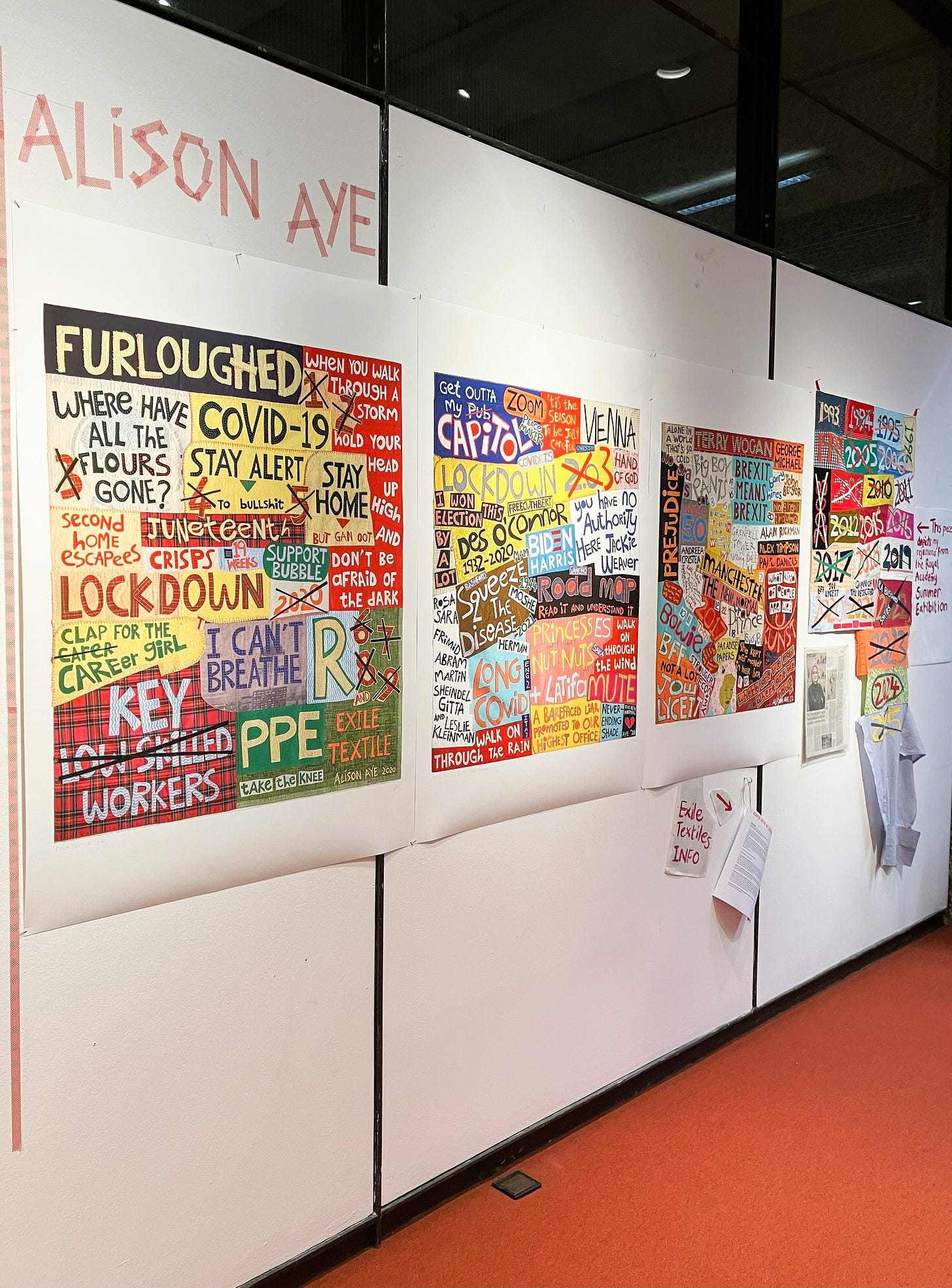Three huge A0 prints (top image) of my Exile Textiles (photographed by Phil Shelly). That’s Exile Textile, Exile Textile II: The New Normal, and Exile Textile III: The Prequel. I had them printed in a panic because the originals were sold, therefore excluding them from the exhibition.