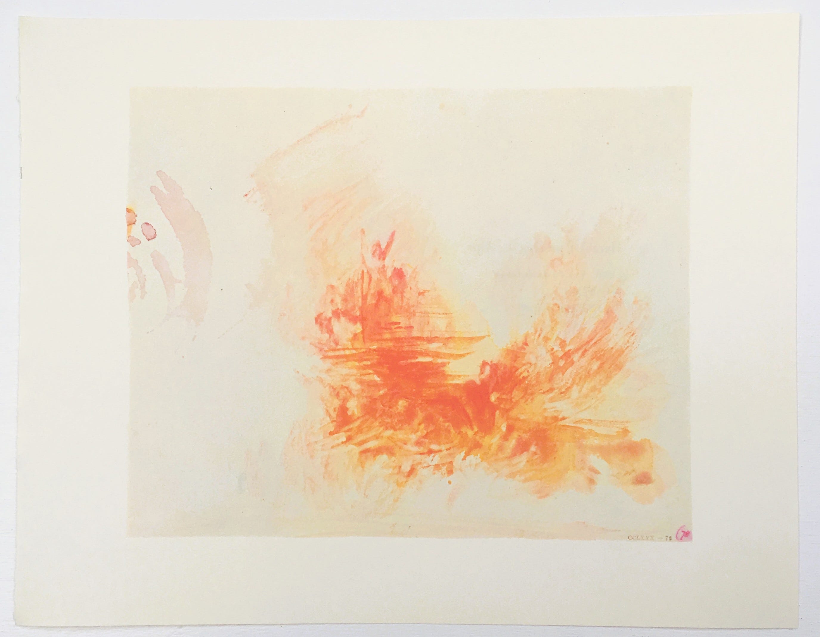 Stitched to a reproduction of Satan Addressing His Angels by JMW Turner. From the Turner Bequest at the Tate Gallery. I did not reproduce this image, but took it from a battered book - Turner Watercolours in the Clore Gallery. Selected and introduced by Andrew Wilton. Published, 1989. Printed by Westerham Press, Kent.