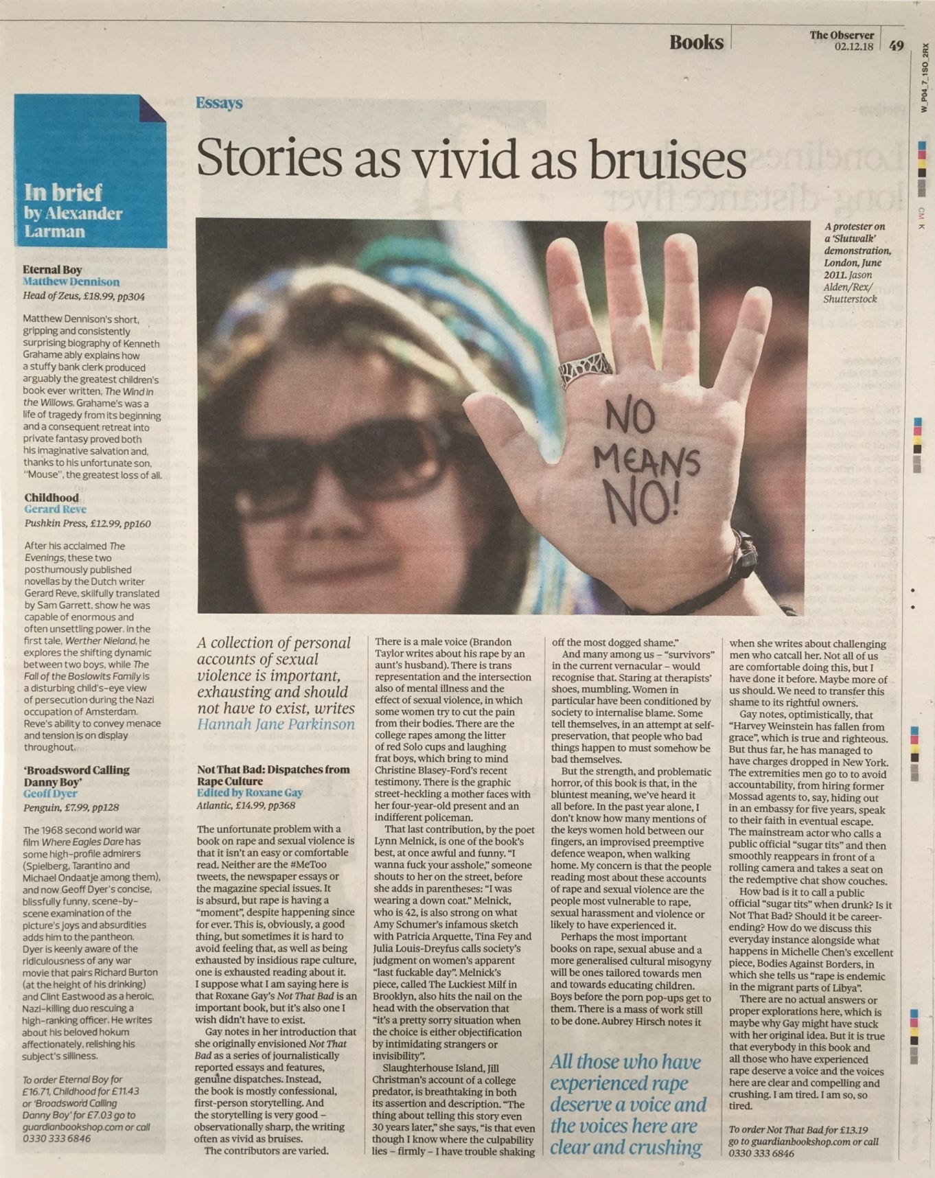 Hand 2: An unnamed protester on a ‘slutwalk’ demonstration Observer (2.12.19). Book review by Hannah Jane Parkinson. Not That Bad: Despatches From Rape Culture. Edited by Roxane Gay. Photo by Jason Alden/Rex/Shutterstock.